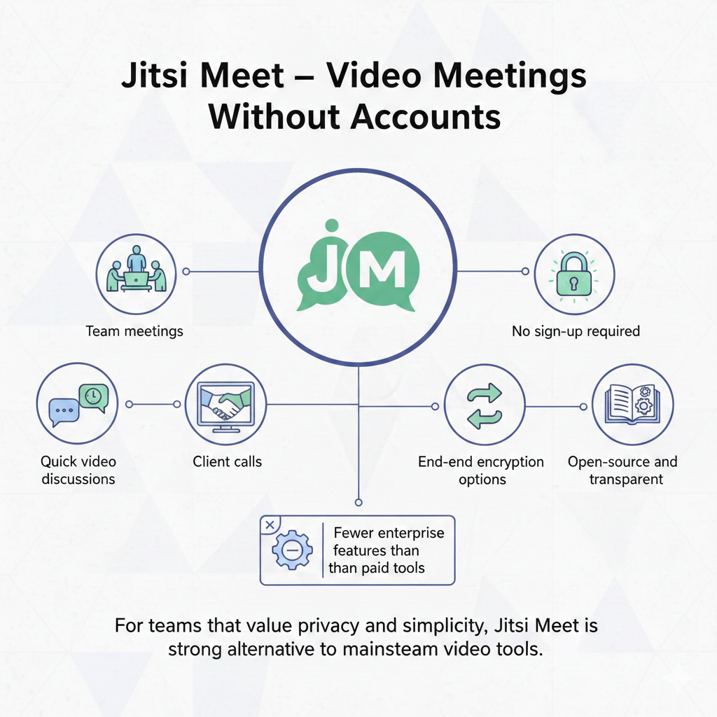 For teams that value privacy and simplicity, Jitsi Meet is a strong alternative to mainstream video tools.
